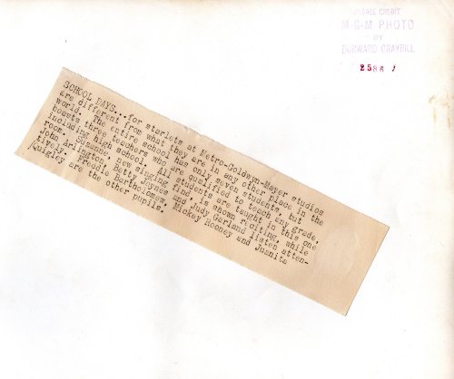Judy Garland 8x10 autographed photograph - this is a classic photograph showing her and some classmates in an MGM studio classroom for young performers. See scan of tag on reverse of photo. $1200